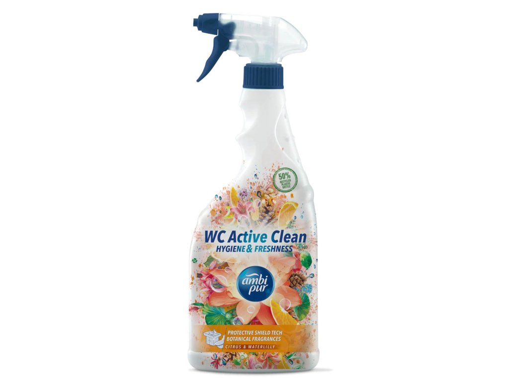 Ambi Pur WC Active Clean sprej je špeciálne navrhnutý na čistenie toaliet a kúpeľní
