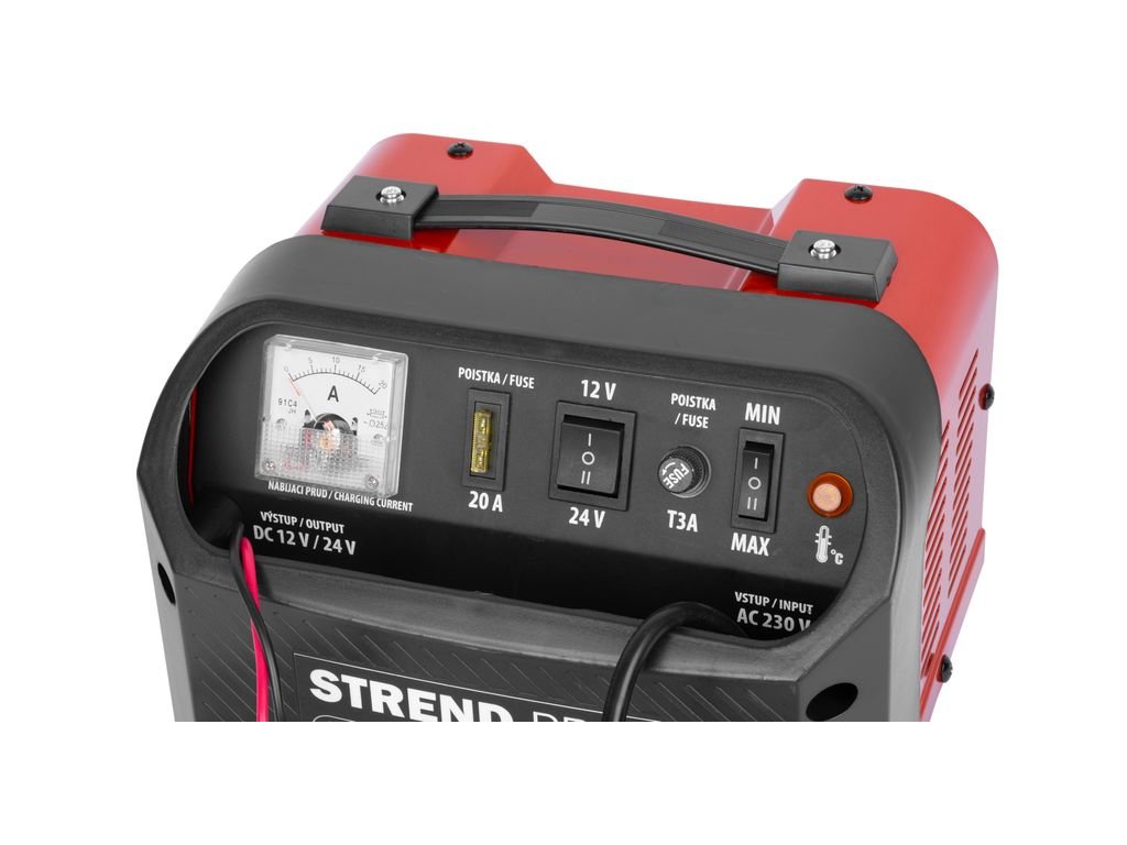 je vybavená prepínačom pomalého a rýchleho nabíjania, prepínačom napätia 12 V / 24 V a dvoma poistkami
