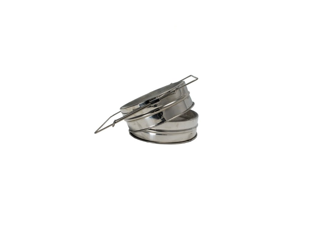 okrúhly dvojdielny včelársky nerezový cedník s priemerom 20,5 cm