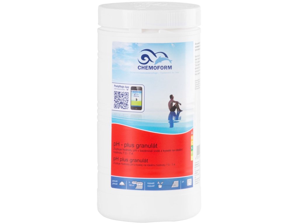 granulovaný prostriedok na zvýšenie hodnoty pH bazénovej vody z kyslej na neutrálne