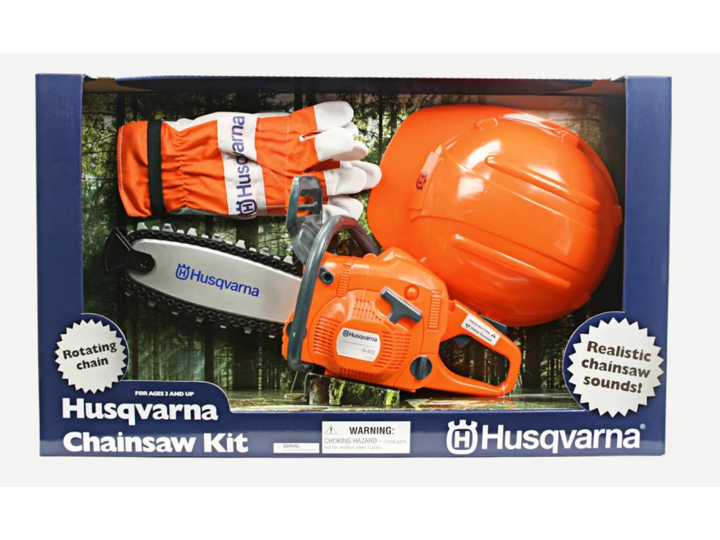 detská hračka, ktorá vyzerá ako skutočná reťazová píla Husqvarna 440