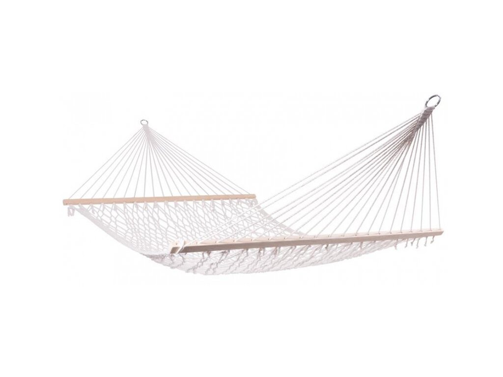 Biela hojdacia sieť je vyrobená z pleteného PE lana.