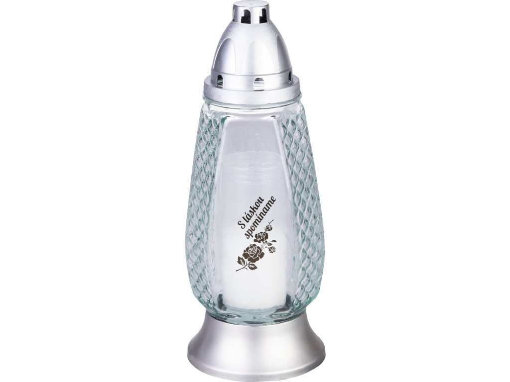 Kahanec Grave, transparentné sklo, s nápisom, strieborný, 28h