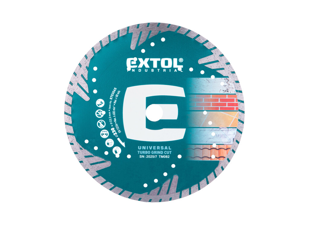 Kotúč rezný diamantový Turbo Grind Cut, 230x2,6mm, suché a mokré rezanie, EXTOL INDUSTRIAL