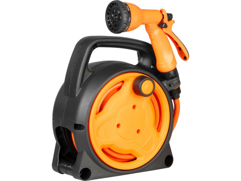 praktický navijak s hadicou vybavený 8-funkčnou zavlažovacou pištoľou