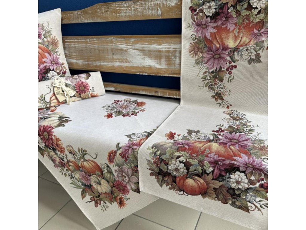 gobelínový obrus s jesenným motívom kvety a tekvice