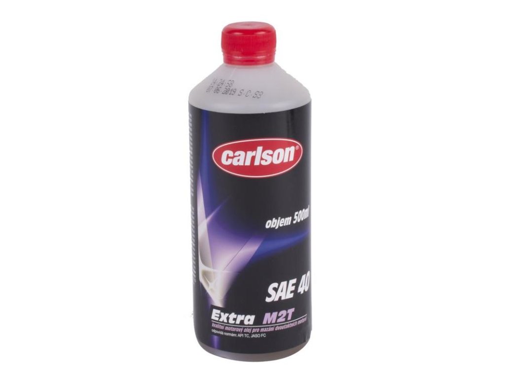 motorový olej Carlson Extra M2T SAE 40 určený na mazanie moderných vysokootáčkových dvojtaktných benzínových motorov, vrátane športových verzií, napr. motocyklov, snežných skútrov, kosačiek na trávu apod.