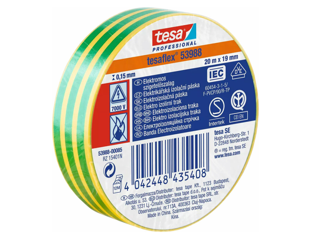Páska 53988 elektroizolačná žlto-zel. 19mm x 20m, Tesa