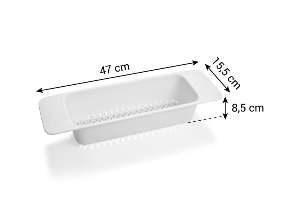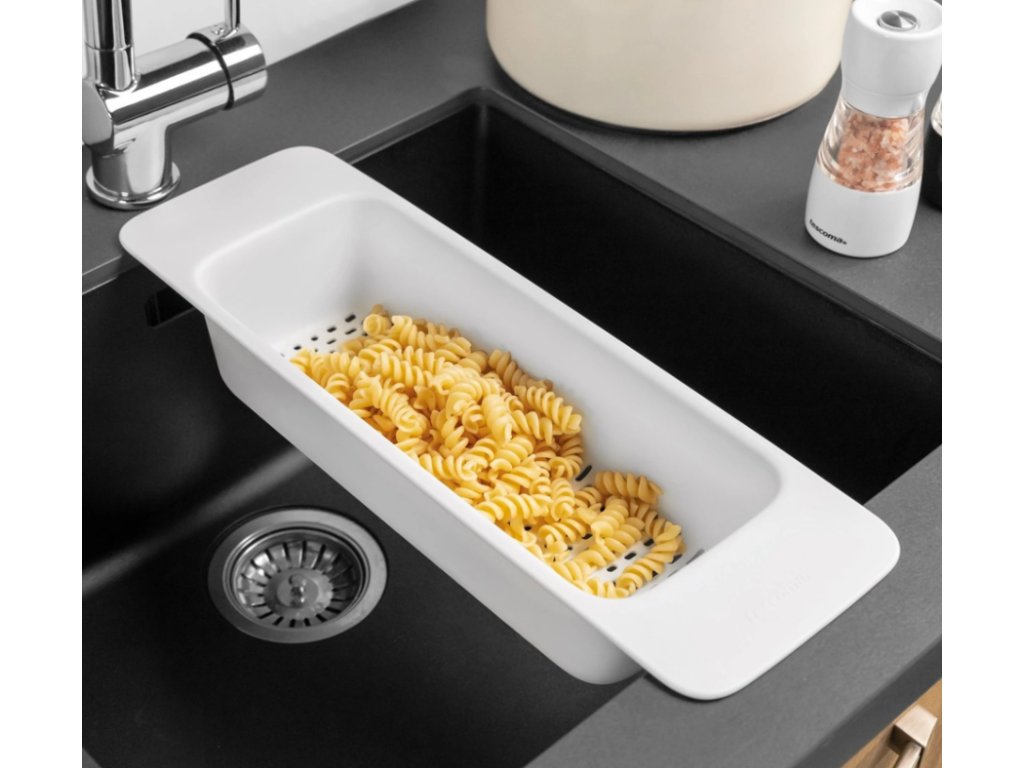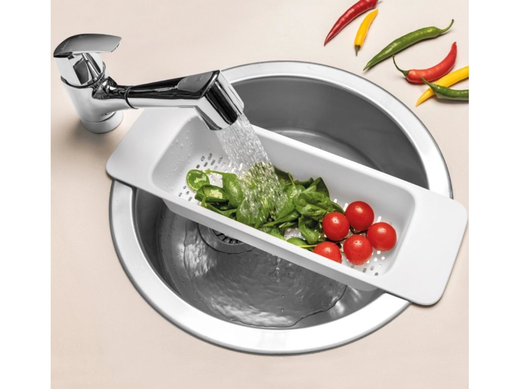 cedník možno zavesiť na okraj drezu alebo vložiť dovnútra