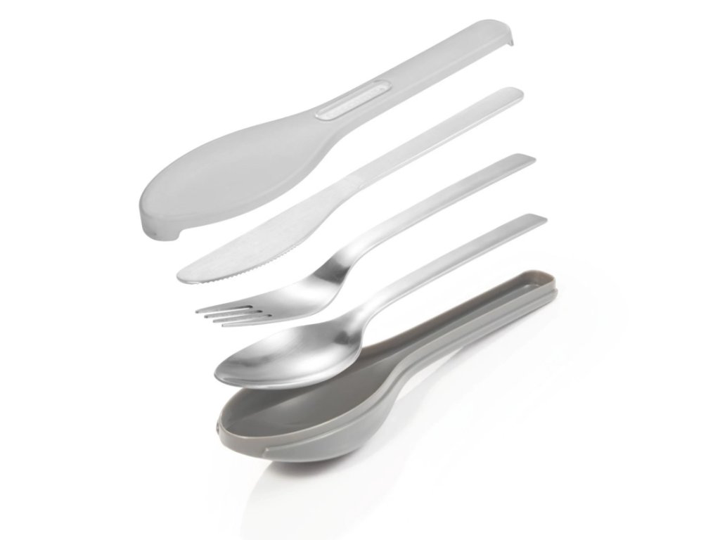jedálenská lyžica, vidlička a nôž v ochrannom puzdre na cestovanie, do zamestnania a pod.