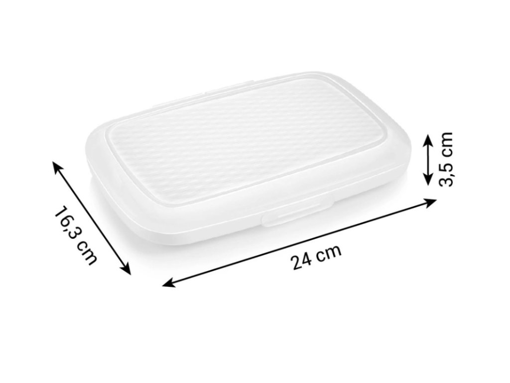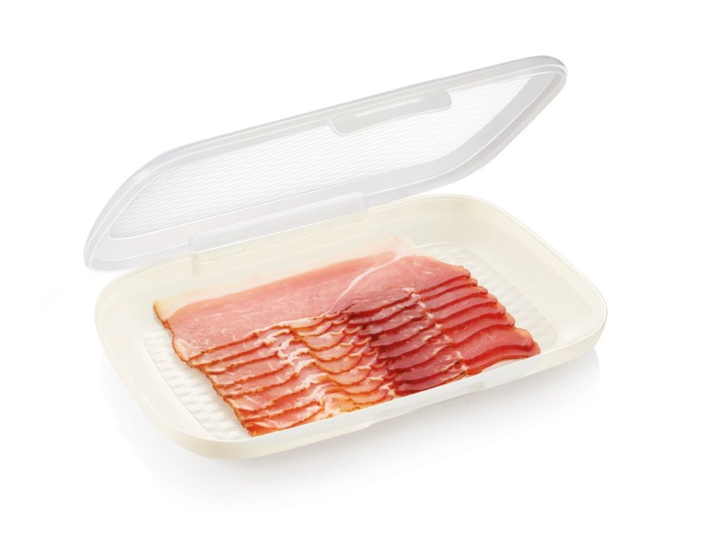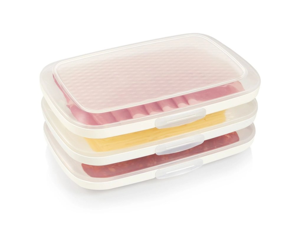 vynikajúca na skladovanie nakrájaných pokrmov, najmä na plátky šunky a syra