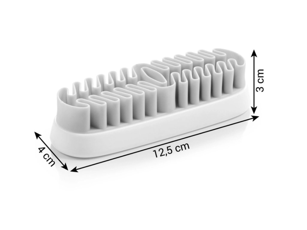 má komfortnú rukoväť a čistiacu časť šetrnú voči semišovej koži