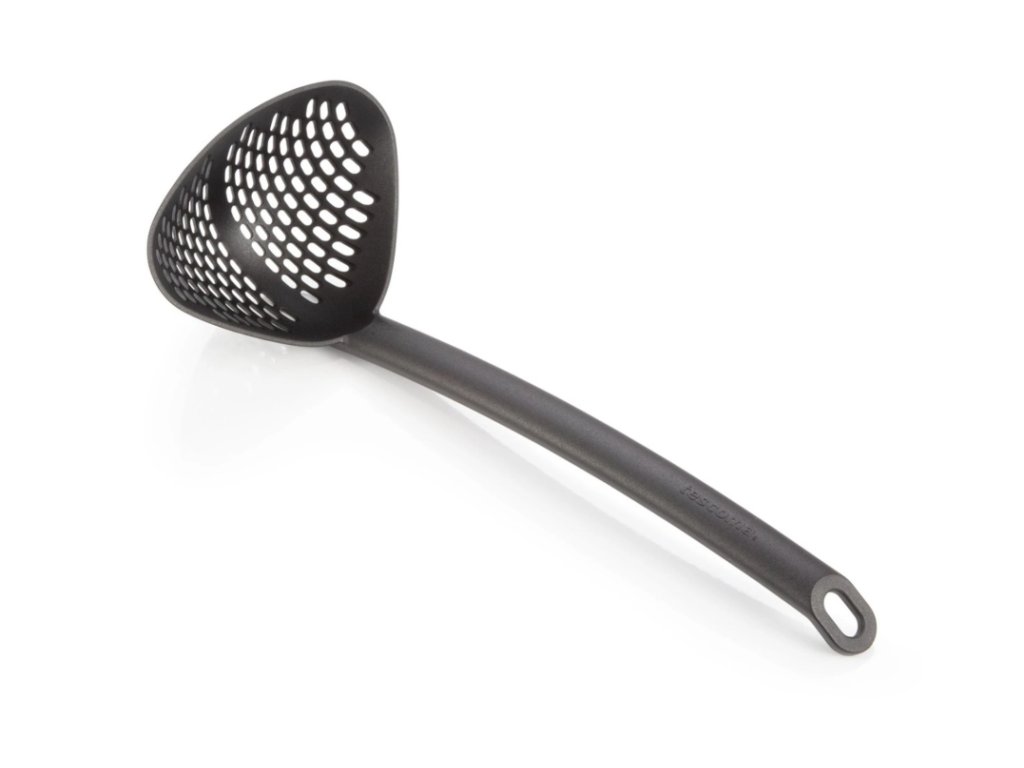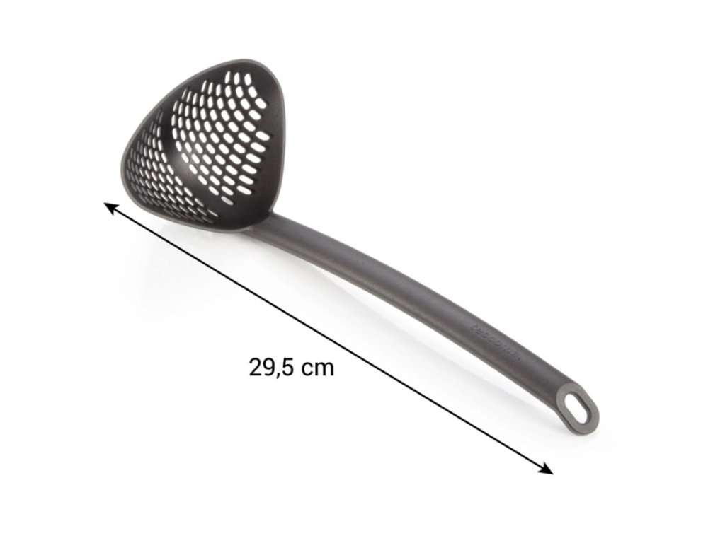 vynikajúca na cedenie a naberanie pokrmov pri dne a v rohoch riadu