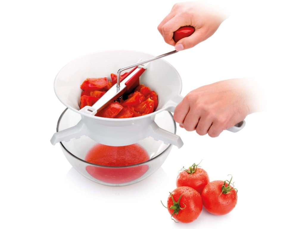 - disk s malými otvormi je skvelý na pasírovanie surových a varených paradajok, varených cukiet, dýň, baby karotky a surových banánov, jahôd a pod.