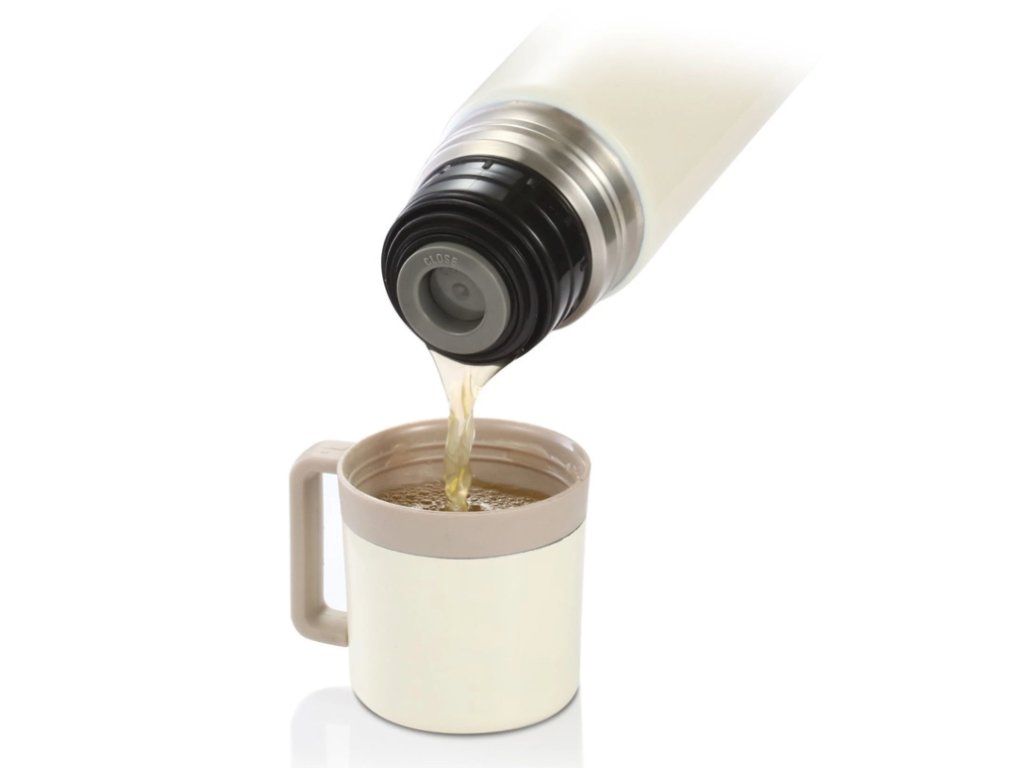 praktické uzatváranie jedným dotykom a kvalitné silikónové tesnenie, ktoré udrží nápoje horúce alebo studené aj pri častom nalievaní