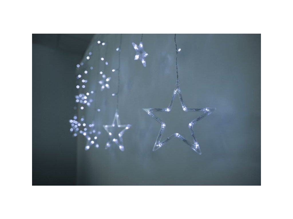 Vianočná reťaz Curtain, 138x LED studená biela, s hviezdami, 230V, 8 funkcií, 220x60/90 cm