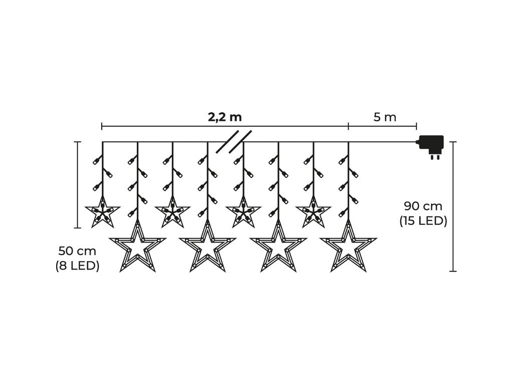 typ osvetlenia: LED reťaz – svetelný záves s hviezdami