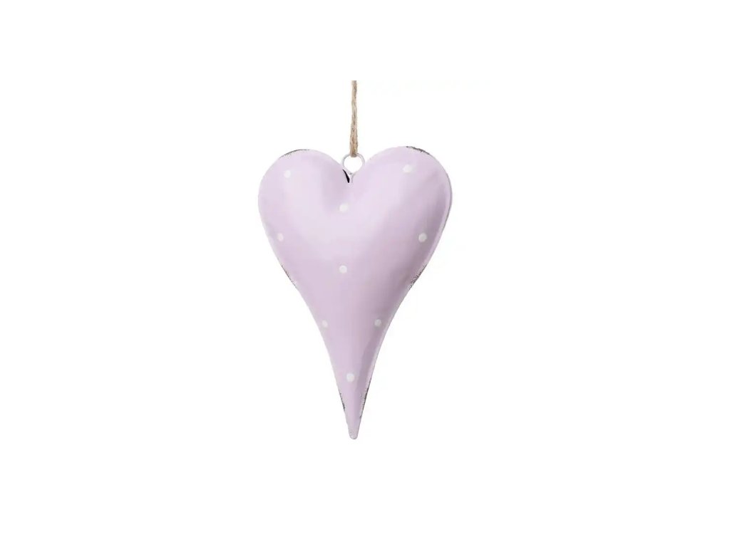 Závesná ozdoba, plechové srdce, fialové, 8,5x2x12,5 cm